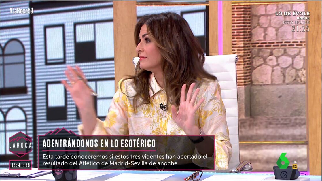 ¿Habrán acertado el resultado del partido del Atlético de Madrid y el Sevilla? "Quiero decir completamente en serio quetodos los esotéricos que adivinan el futuro, para mí, deberían estar en la cárcel",afirma Juan del Val en la mesa, donde Nuria Roca le llama la atención: "Te van a hacer un maleficio que me va a salpicar a mí".