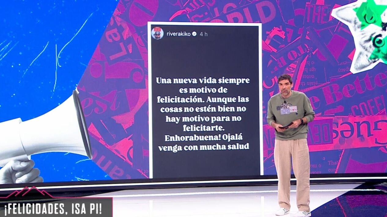 Isa Pi y Kiko Rivera han protagonizado 'el repaso' de Nacho García en La Roca. El humorista, en su sección, ha hablado sobre el embarazo de la hija de Isabel Pantoja y, sobre todo, de la felicitación de su hermano. "Este mensaje lo ha debido escribir un notario", afirmó.