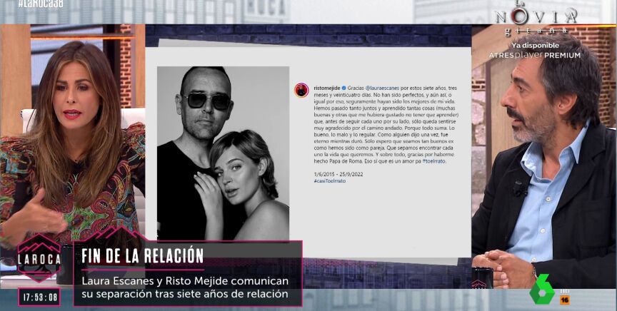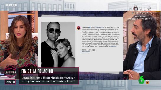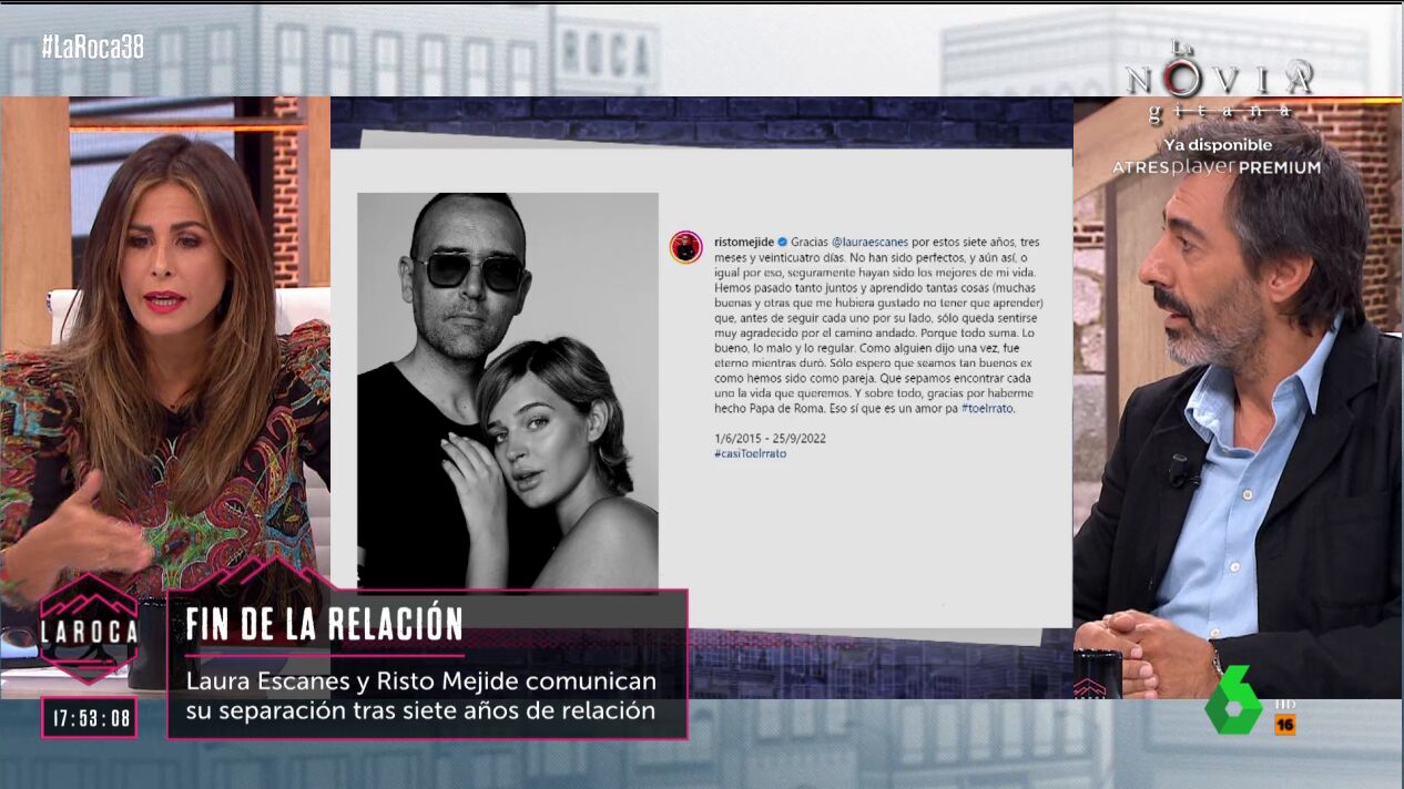 Risto Mejide y Laura Escanes se separan tras siete años de relación y una hija en común. En este vídeo puedes ver la reacción de Nuria Roca y Juan del Val al enterase en directo en el plató de La Roca.