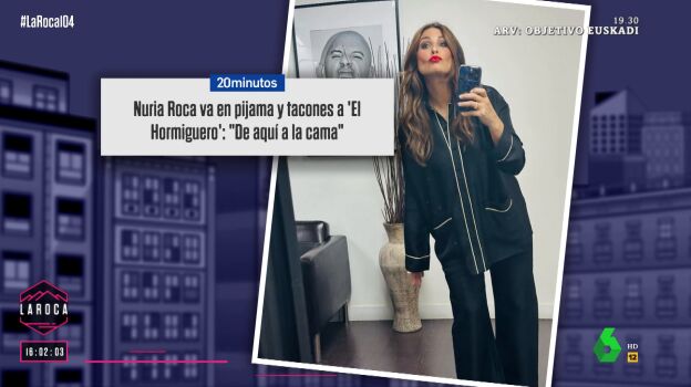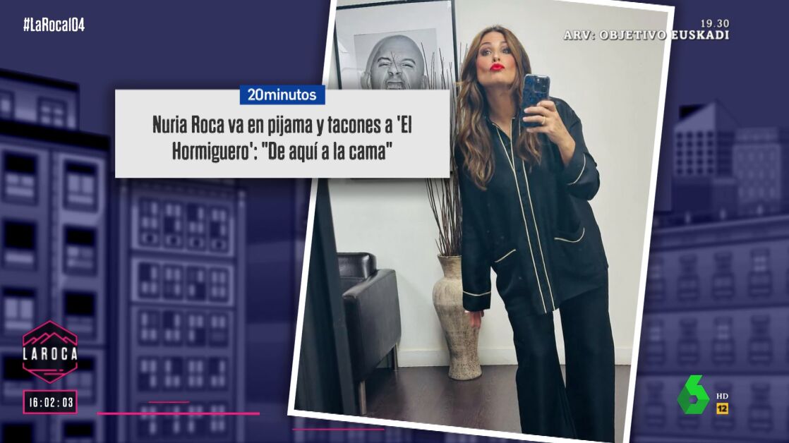 Incluso Nuria Roca "ha ido a trabajar en pijama" esta misma semana, concretamente para ir a 'El Hormiguero'. "Es pijama-moda, porque iba con el tacón puesto. Si te llego a ir con las pantuflas, entonces sí...", defiende la presentadora. Sin embargo, Nacho García lanza una pregunta: ¿se cambió después o ya se quedó en pijama? "Tengo que confesar que el jueves de El Hormiguero me fui a casa así. No me cambié, porque iba tan cómoda... pero me quité el tacón", reconoce.