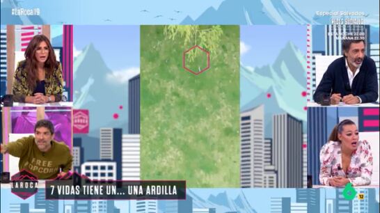 "Las que están son las que hay", ha afirmado en el programa . "A ver, desarrolla esta teoría", le ha indicado Nuria Roca. "Palomas he visto muchas, pero las ardillas son inmunes a la gravedad", ha contestado, mostrando varios vídeos de ardillas que se salvan de situaciones de peligro.