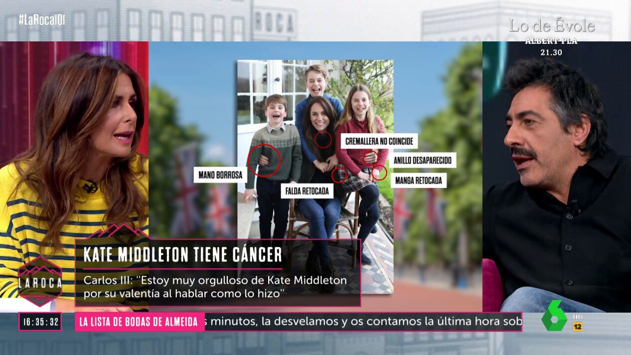 A pesar de que algunos colaboradores de La Roca se muestran de acuerdo con que Kate Middleton necesitaba tiempo para comunicar que padecía cáncer, Berni Barrachina les contradice: "Sigo pensando que lo tendría que haber contado antes para que no se generara esto".