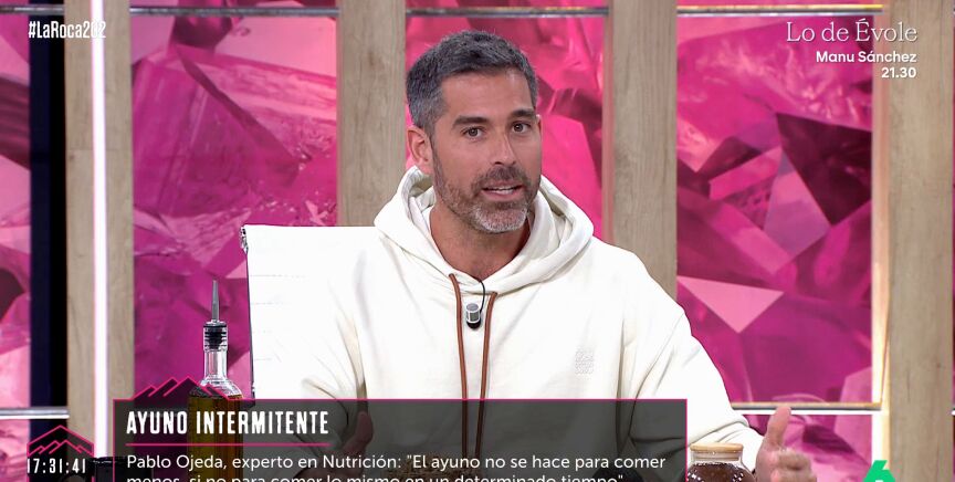 Pablo Ojeda ha salido en defensa del ayuno intermitente en La Roca, y ha aclarado que "no se hace para comer menos, sino para comer lo mismo en un determinado tiempo". "En la ventana de ocho horas, es donde tú tienes que meter todos los nutrientes del día de una manera adecuada", ha destacado.