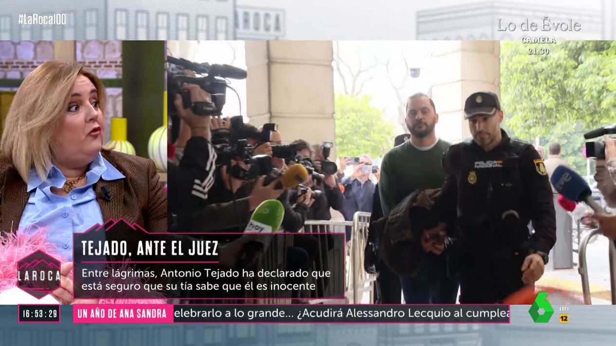"Dice que está convencido de que su tía sabe que él no es culpable", comenta Pilar Vidal en La Roca, donde aclara las razones que llevaron a Antonio Tejado a no responder a las preguntas que le hizo el abogado de su tía María del Monte.