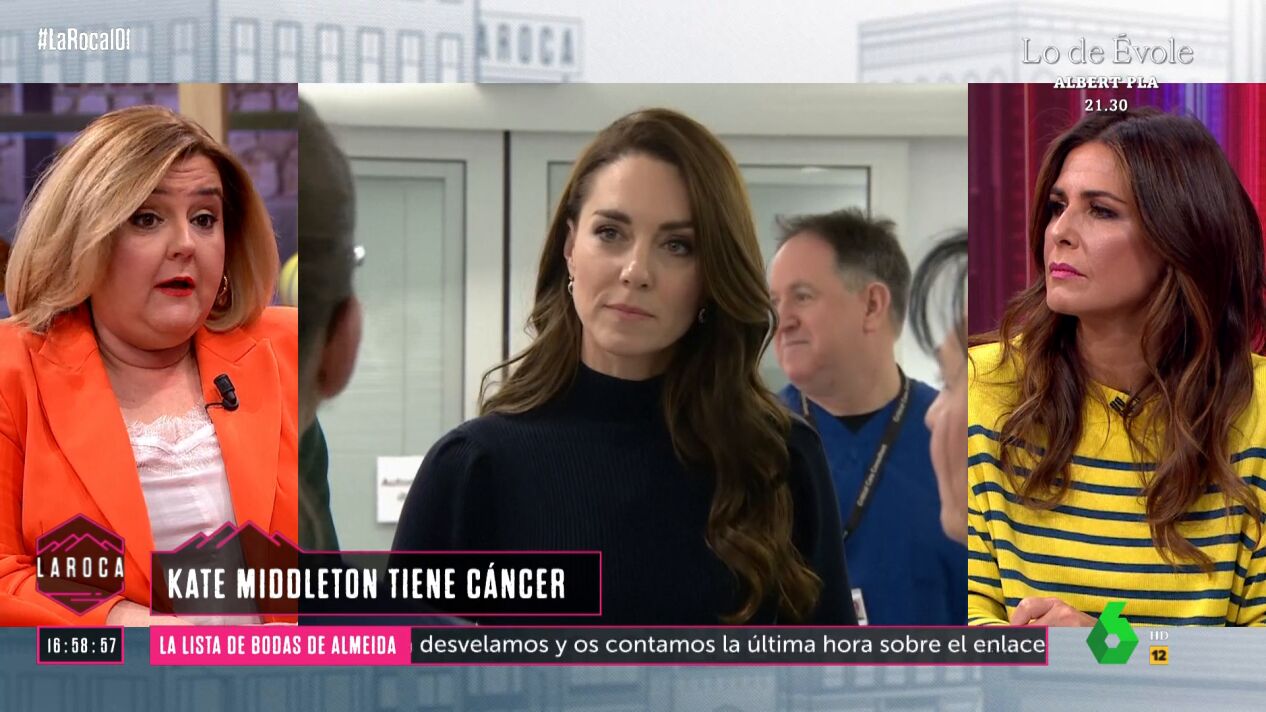 Pilar Vidal asegura en La Roca que, tras el comunicado que hizo Kate Middleton el pasado viernes anunciando que tiene cáncer y que se está sometiendo a quimioterapia, "la llaman la magnánima de la familia porque el rey no lo ha hecho". "Su suegro hizo un comunicado escrito, que ella también podía haberlo hecho perfectamente", pero alaba que diera la cara a la hora de contar qué estaba pasando y explicara los motivos de su ausencia estos meses.