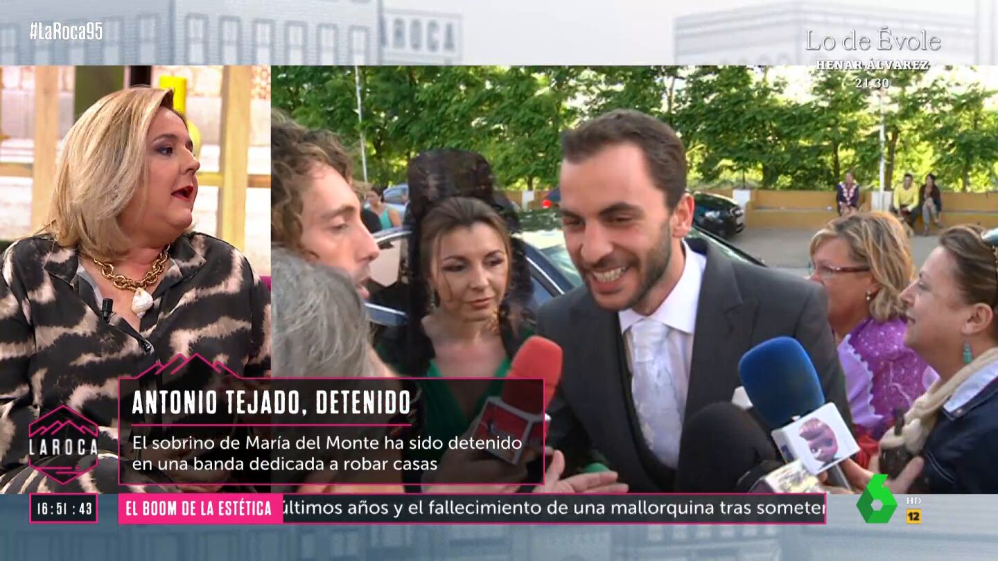 Antonio Tejado, sobrino de María del Monte, ha sido detenido junto a otras siete personas más en el marco de una operación policial contra una banda dedicada a robar casas, en Sevilla. Además, está siendo investigado por el robo en la vivienda de su tía, María del Monte.