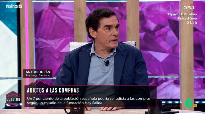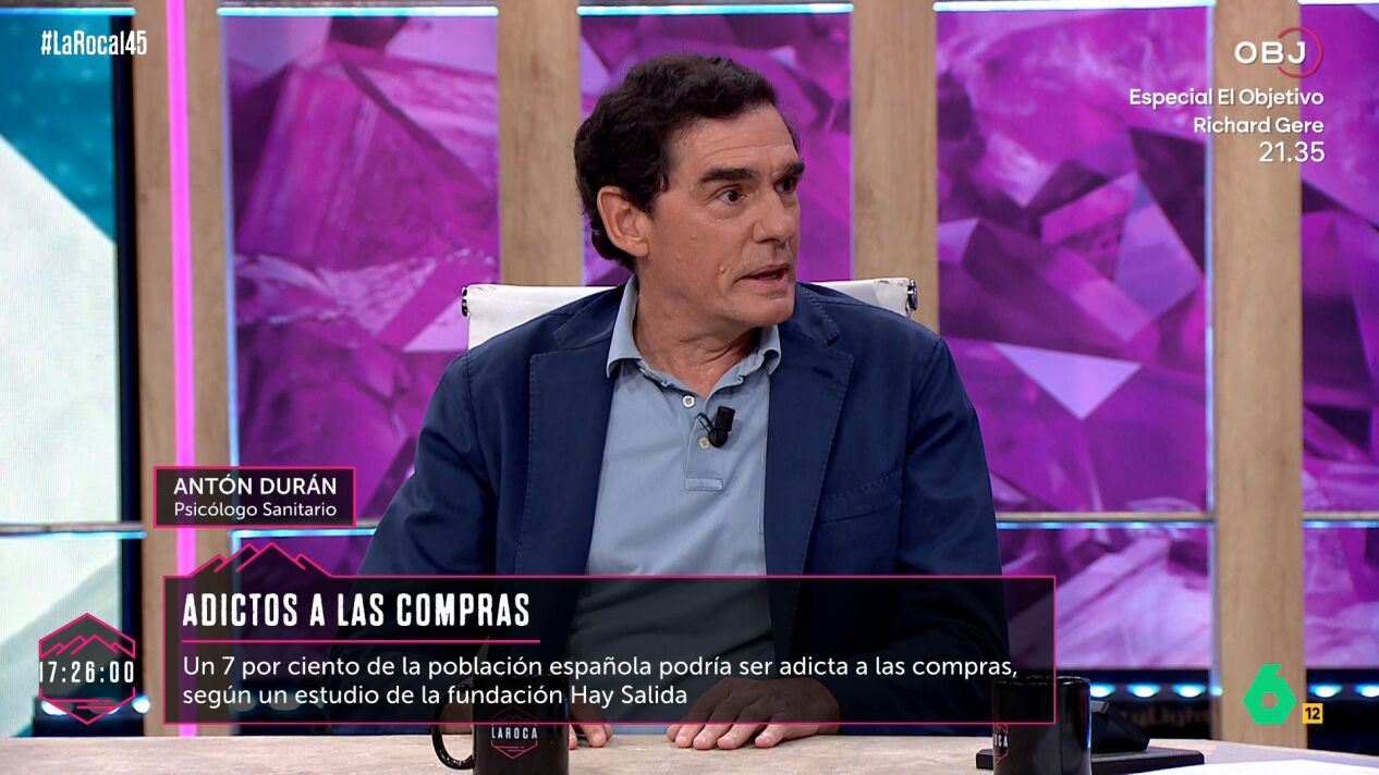 Antón Durán, director de la 'Fundación Hay Salida' y psicólogo sanitario ha hablado en La Roca sobre la adicción a las compras, y ha señalado que es "una adicción como otra cualquiera". Así, ha expresado que las adicciones vienen por "intentar tapar el dolor interno que uno tiene y en cada uno sale por el sitio que más tiene a mano", tras lo que ha afirmado que "si eres adicto, lo eres para siempre".