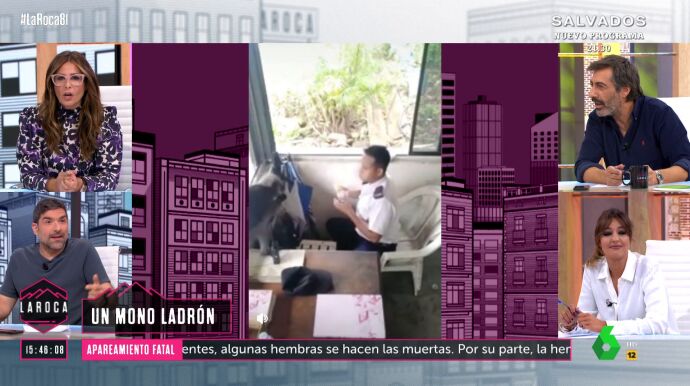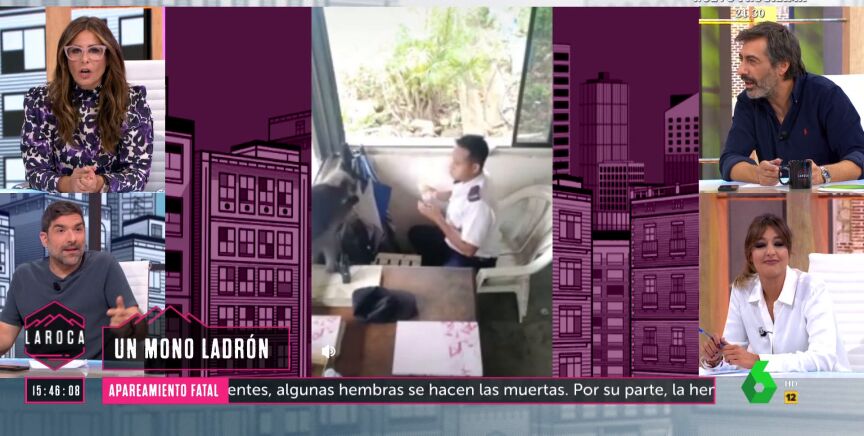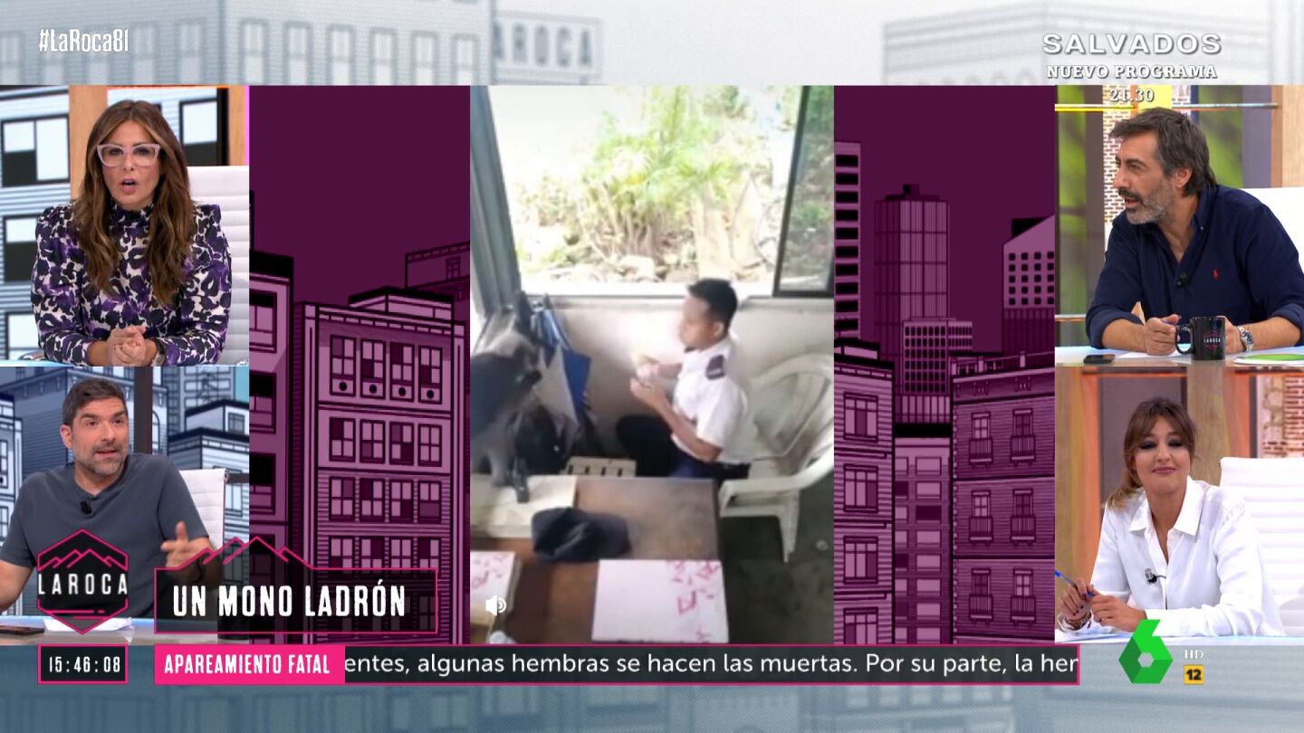 Nacho García ha lanzado una clara advertencia en 'La Roca'. "Ojo con los monos, que te roban", ha indicado. El colaborador ha mostrado en el programa un vídeo viral en el que se puede ver cómo uno de ellos le quita la comida a una persona.