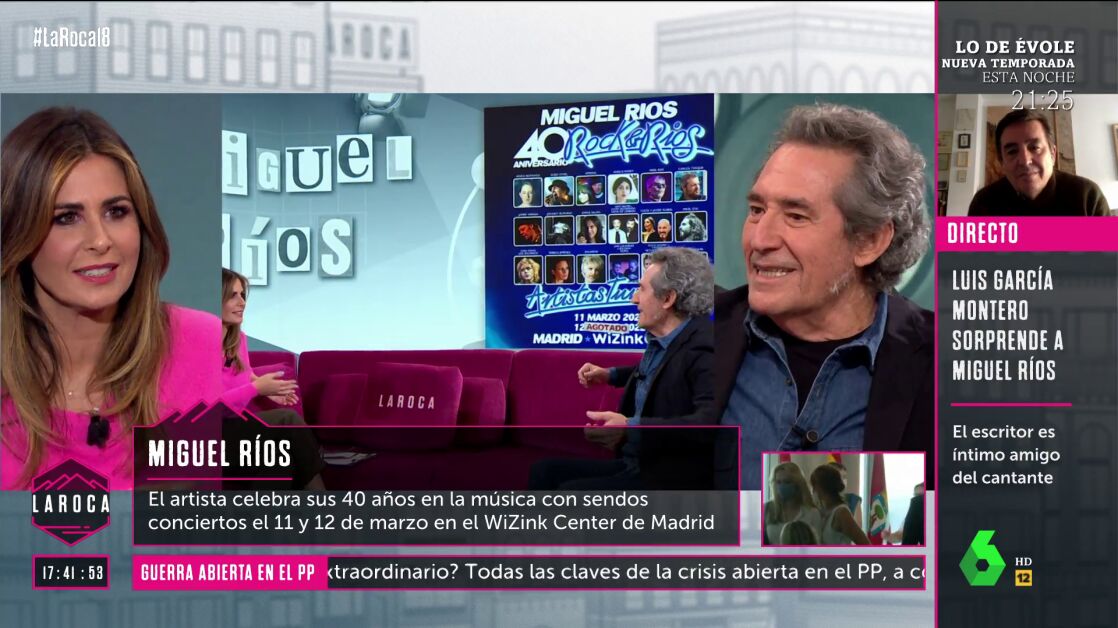 "¿Dónde hay que firmar? Está todo el mundo absolutamente fascinado", ha manifestado entonces la presentadora de La Roca quien ha destacado, además, "la energía" que tiene Miguel Ríos, algo en lo que este le ha dado la razón: "Creo que eso es lo que me ha permitido a mí mismo llevarme la contraria, decir que me retiraba, y luego darme cuenta de que no podía hacerlo". El artista ha celebra sus 40 años en la música con conciertos el 11 y 12 de marzo en el WiZink Center de Madrid.