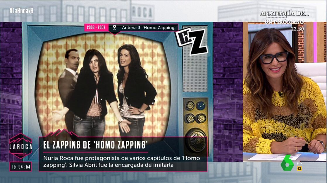 En La Roca hemos metido a Nuria Roca en la máquina del tiempo, recordando su paso por 'Homo zapping', icónico programa de humor de Antena 3 entre los años 2003 y 2007 que tuvo todo tipo de invitados, desde Isabel Gemio hasta Bárbara Rey, pasando por Miguel Bosé, Constantino Romero o Jordi Hurtado.