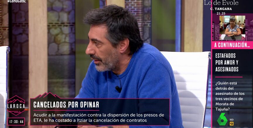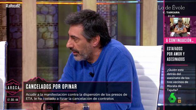 "Pasa mucho, pero vamos a intentar que no pase aquí", comentó el colaborador de La Roca; que recalcó que la actriz "tiene todo su derecho de reclamar los derechos de ETA". "Vamos a dejar que la gente piense como les dé la gana", concluye su intervención Juan del Val.
