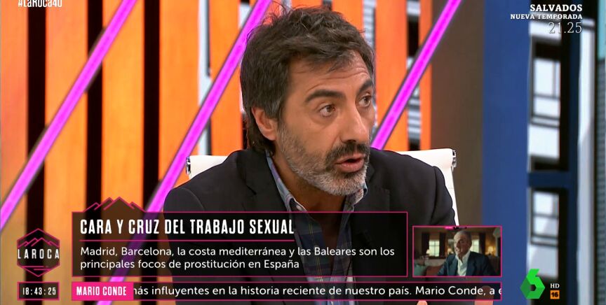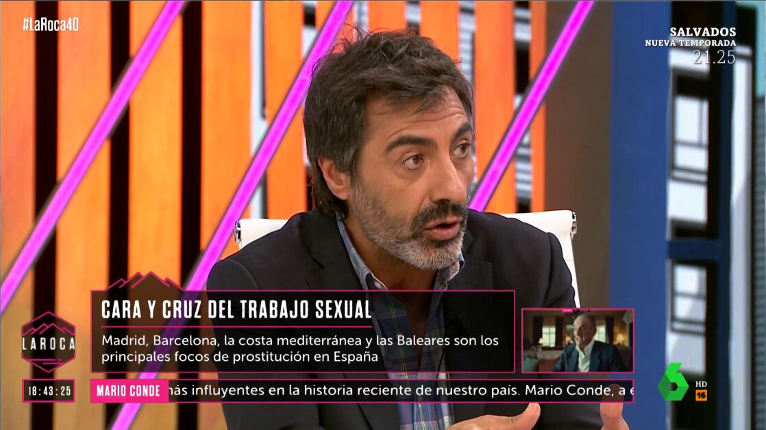 Juan del Val ha defendido en La Roca, en medio de un debate sobre la abolición de la prostitución y la regularización de este trabajo sexual, que exista la "opción de libertad" de quienes quieren ejercer ese trabajo de manera libre. "¿Por qué no lo van a poder hacer?", ha cuestionado.