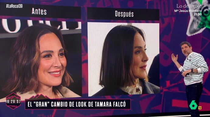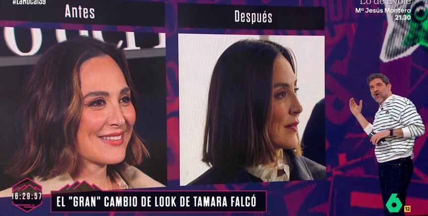 El humorista, en La Roca, ha comparado la foto del antes y del después del 'cambio de look' de Tamara Falcó y lo tiene más que claro: "Un cambio radical, de la noche al día".