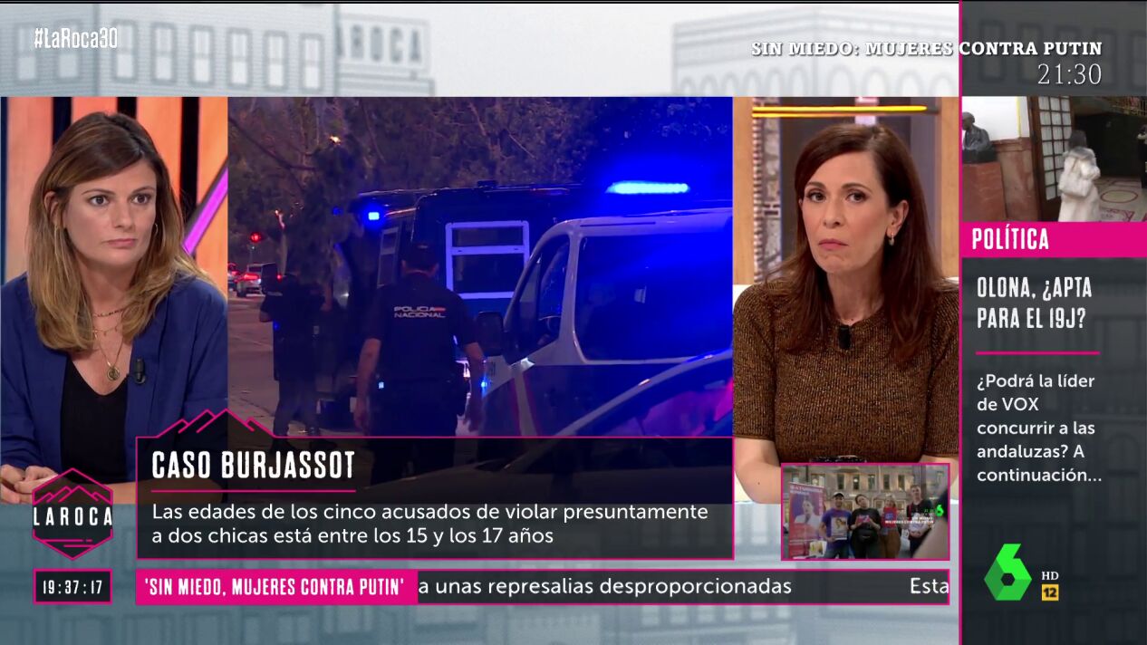 La periodista ha reflexionado en La Roca sobre cómo los familiares de los presuntos violadores en grupo de Burjassot recibieron a los acusados entre vítores tras salir en libertad vigilada.