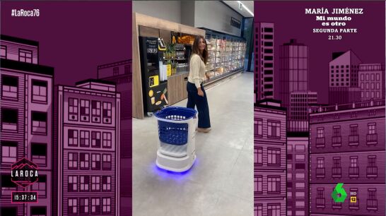 Nacho García muestra su asombro al ver el supermercado al que ha ido a comprar Nuria Roca, y es que la cesta te sigue mientras vas cogiendo distintos productos. "Es algo que se está implantando", explica la presentadora.