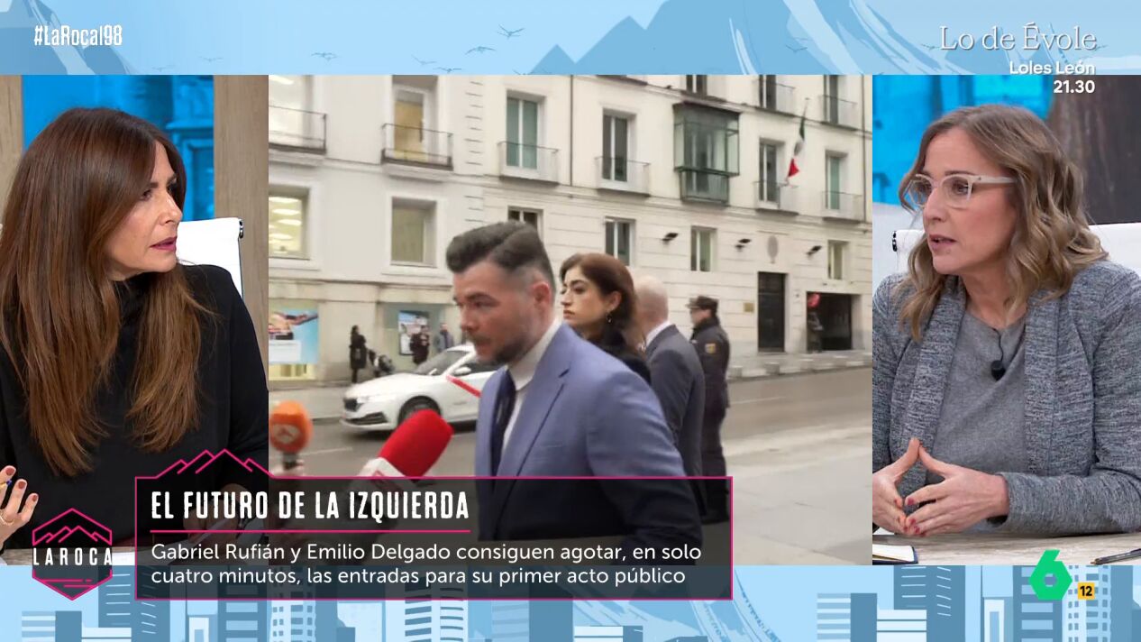 Ambos políticos han conseguido agotar, en tan solo cuatro minutos, las entradas gratuitas para su primer acto público. Desde el plató de La Roca, Tania Sánchez da su opinión sobre lo que espera del evento de Delgado y Rufián.