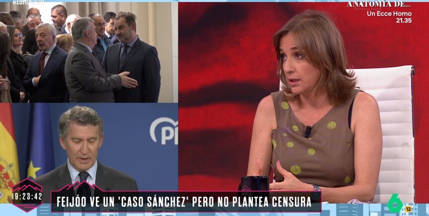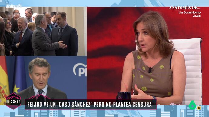 En La Roca, la colaboradora ha señalado que Alberto Núñez Feijóo, presidente del Partido Popular y líder de la oposición, "no es alguien confiable": "El sistema democrático se sustenta en la confianza de la mayoría de la gente. Pueden decidir votar a uno o a otro, pero el sistema es confiable. Si algo no es Feijóo es alguien confiable. Y este es un problema muy grave".