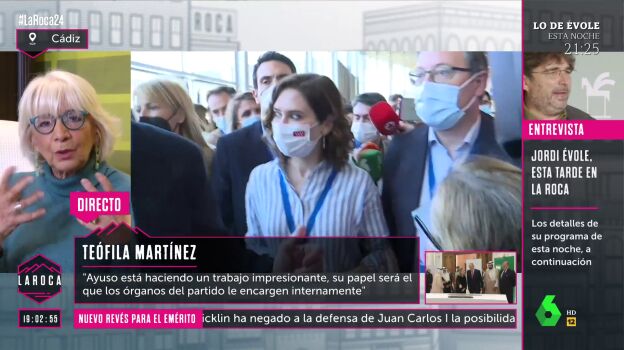 Teófila Martínez ve "seguro" que Ayuso tendrá más peso en el PP en un futuro: "Está haciendo un trabajo impresionante"