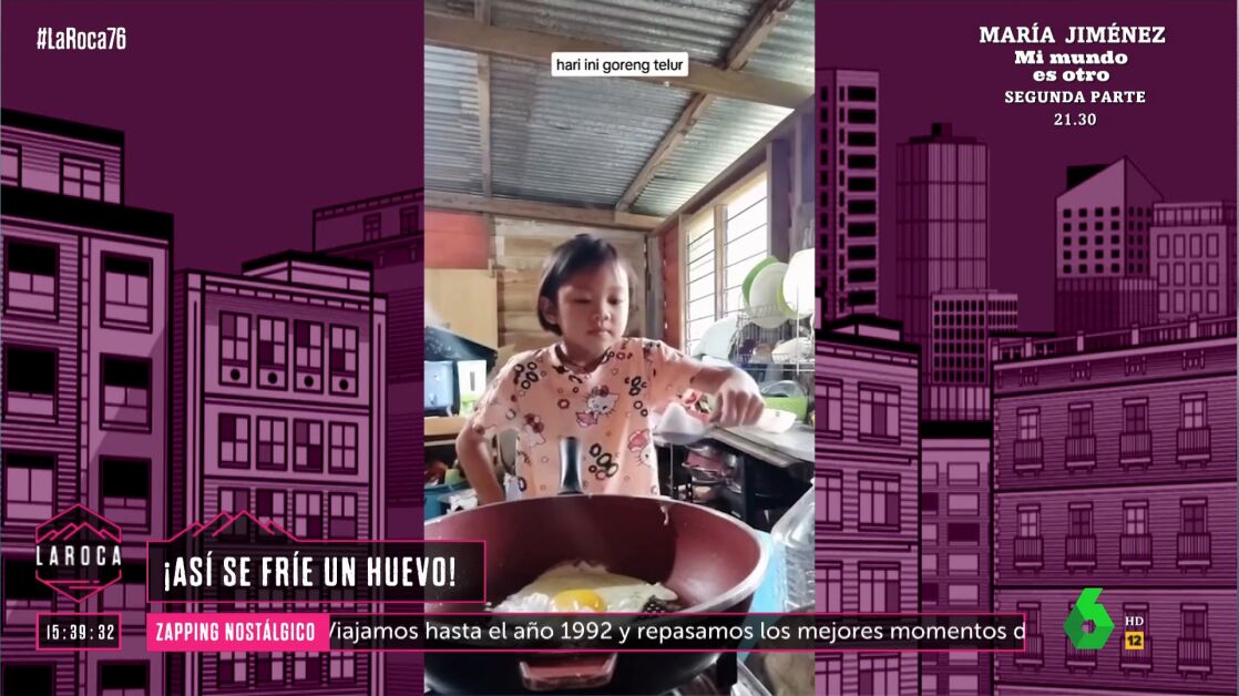 Sin embargo, lo que no acaba de controlar muy bien la niña es el punto de sal del huevo frito. Dale al play y no te pierdas este momentazo que hace reír a los colaboradores de La Roca.
