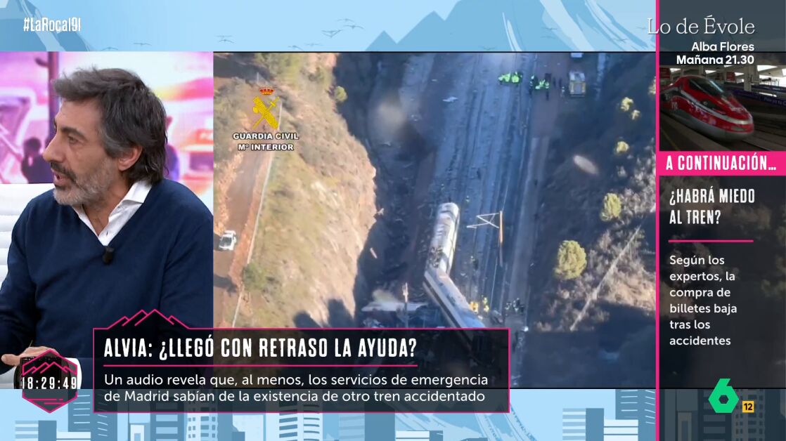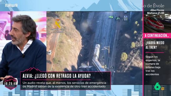 Juan del Val ha hablado en La Roca sobre el accidente ferroviario del pasado domingo en Adamuz, destacando que "hay 45 muertos", por lo que ha defendido que "hay que ver si alguien verdaderamente tiene responsabilidad en esto". "Ya parece que esto se produce por la rotura de una vía. Lo que no se sabe es el motivo. Podríamos estar hablando de falta de mantenimiento", ha señalado, al tiempo que ha insistido en que "el accidente se produce porque la vía está rota, y la fatalidad hace que otro tren se cruce".