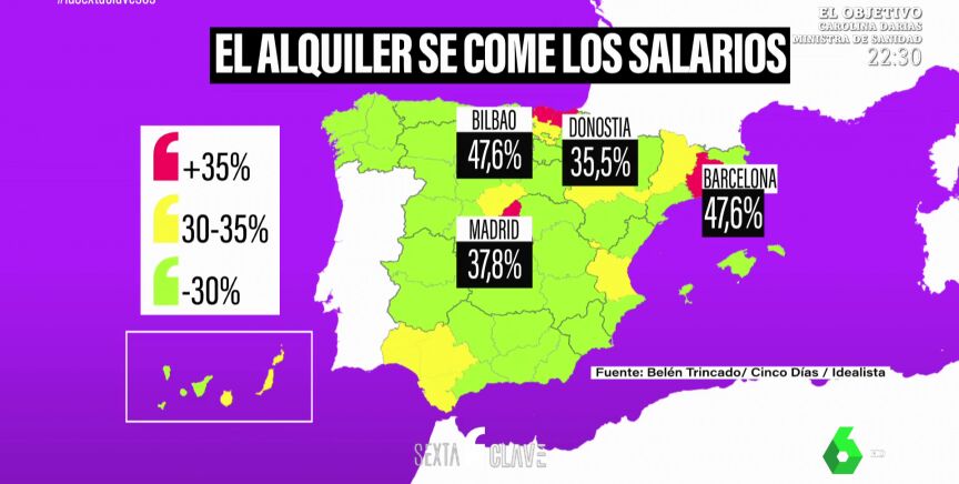 Las capitales de provincia que arrastran una peor situación son Madrid, Barcelona, Bilbao y San Sebastián. En estas ciudades el alquiler representa más del 35% del salario de sus habitantes.