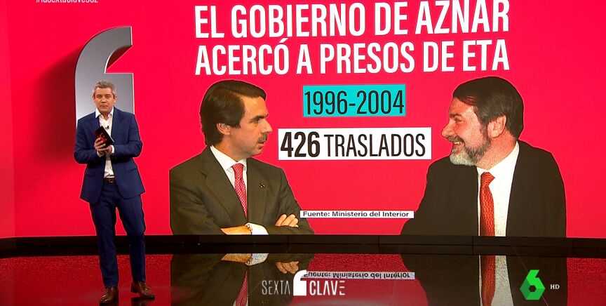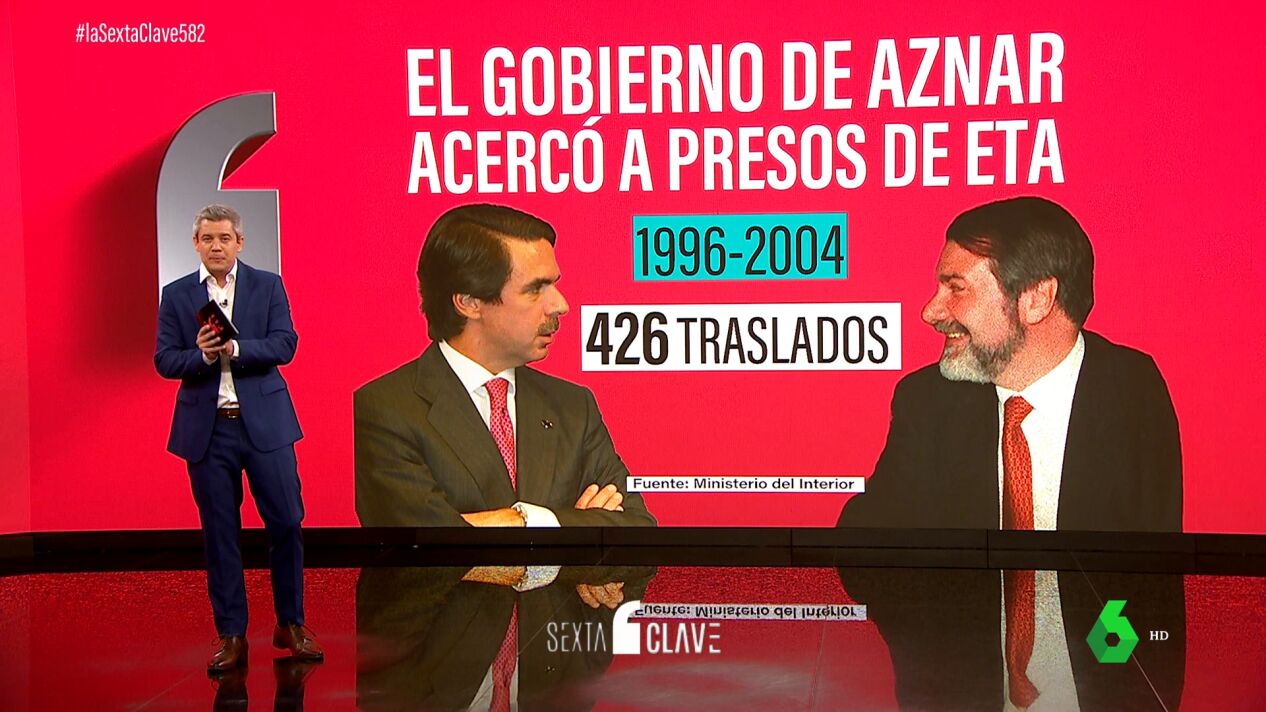 Vuelve la memoria selectiva de Aznar. Con todos los gobiernos ha habido traslados de presos. Con el Gobierno de Aznar, más de 400 presos etarras fueron acercados a Euskadi. Pero hay una gran diferencia entre hoy y los años 90: entonces ETA existía y mataba. De 1996 a 1999, ETA asesinó a 24 personas. El entonces ministro del Interior, Jaime Mayor Oreja, justificó los traslados por un "anhelo de paz".