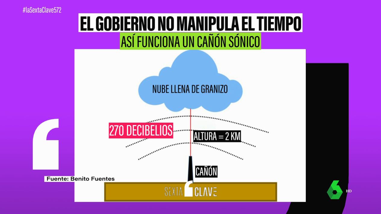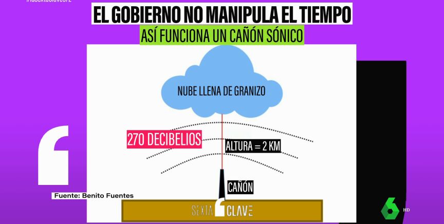 Si tienes cultivos y sabes que el granizo los va a dañar buscas que ese granizo sea lo más pequeño posible. En este caso, hay empresas que ofrecen a los agricultores lo que ellos llaman "cañones sónicos". El cañón emite un sonido con una presión determinada que ayuda a romper el granizo.