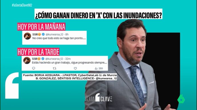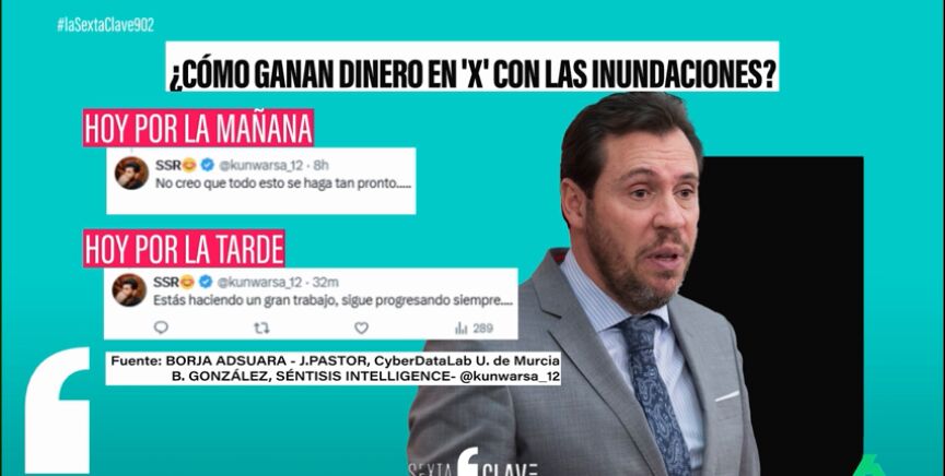 En los últimos días, varios usuarios de la red social 'X' han denunciado una serie de tuits alarmistas sobre las inundaciones en Valencia. "Ayer se bajó al parking del CC Bonaire y contaron más de mil muertos. La gente de allí estamos allí y lo estamos viendo.....DEJAD DE MENTIR", tuiteó @kunwarsa_12, una cuenta verificada 'X' cuya ubicación se encuentra en la India y que, antes del 30 de octubre de 2024, no había publicado nunca sobre la DANA, España, Valencia o Bonaire. Los responsables de este tipo de tuits utilizan bots para propagar contenido que atrae grandes cantidades de vistas. Sin embargo, no se trata solo de confusión: el verdadero fin es económico.