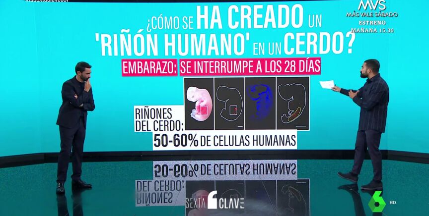 Este hito, abre la puerta a la esperanza de miles de personas, pero también abre el debate ético sobre estas prácticas. ¿Cuáles son los limites de la ciencia? Para responder a esta preguntas, es necesario irnos al origen. Hay que situarse en sur de China. En un laboratorio, unos científicos reprograman unas células humanas con un objetivo: incorporarlas en un embrión de cerdo, que ya ha sido modificado previamente para que no rechace las células humanas. Una vez que ese embrión ya puede desarrollar un riñón humanizado, se incorporan a unas cerdas, que funcionarían como un vientre de alquiler. Y se deja que empiecen a gestar esos embriones que tienen esos riñones humanos.