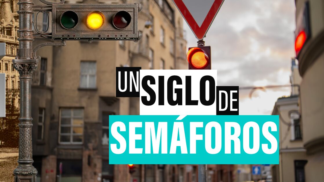 Esta es la evolución de los semáforos a lo largo de las diferentes épocas en las que hemos convivido con ellos, con este objeto tecnológico. Porque han evolucionado a lo largo de estos 100 años hasta alcanzar casi el futuro: semáforos que reflejan sus señales de luz en el suelo. Todo, para que los que vayan siempre mirando el móvil, también vean el peligro.