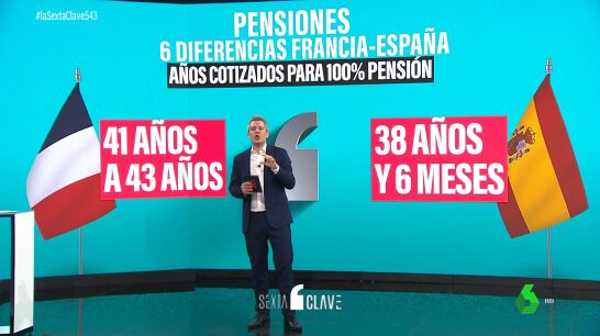 - Segunda diferencia: los años que hay que cotizar para obtener una jubilación plena. En Francia, quien quiera recibir toda su pensión tendrá que haber cotizado 43 años. La reforma de España tampoco ha tocado este concepto. Aquí está en 38 años y medio.