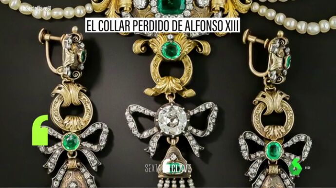 El certificado de autenticidad de la pieza así lo acredita: recoge que el collar contiene cerca de una veintena de esmeraldas, 300 diamantes y 700 perlas, pero también que vendido por la monarquía española para financiar el golpe de Estado contra la República.