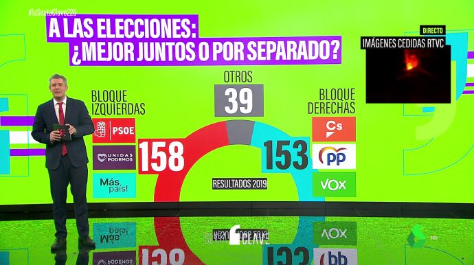 laSexta Clave ha querido resolverlas realizando un experimento a partir de los resultados de las generales de hace dos años. Para ello se parte de dos premisas que, por supuesto, no siempre se cumplen: que todos los votantes de Ciudadanos votarían al PP si sólo hubiera una lista, y que todos los votantes de Más País votarían a una plataforma que uniera todo lo que hay a la izquierda del PSOE.