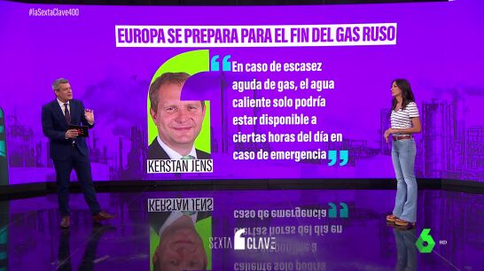 Se trata de una excusa perfecta para que el gas no vuelva a fluir hacia Europa. Y ante ese temor, fundado, la Unión Europea se prepara. Lo primer sería racionar la energía, como ha indicado la periodista Laura López Valero en laSexta Clave: una de las últimas ciudades que ha anunciado medidas ha sido Hamburgo, que baraja la posibilidad de racionar el consumo de agua caliente. Afirma que si hay escasez de gas solo estará disponible el agua caliente a ciertas horas del día. Lo ha advertido el senador de medio ambiente.