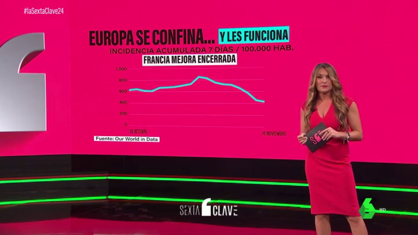 Francia, por ejemplo, ha sido uno de los países europeos pioneros a la hora de encerrar a su población en esta segunda ola. Fue el pasado 30 de octubre, y desde entonces, tras superar el pico nueve días después, los contagios comenzaron a caer en picado.