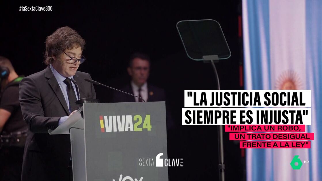 El presidente de Argentina, Javier Milei, ha asegurado que la "justicia social, siempre es injusta, porque implica un robo y un trato desigual frente a la ley", además ha afirmado "que cada intento de los políticos por hacerse los buenos, termina perjudicando la generación de riqueza y en consecuencia perjudicando al conjunto de la sociedad".