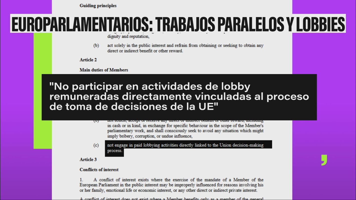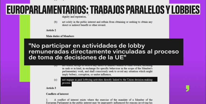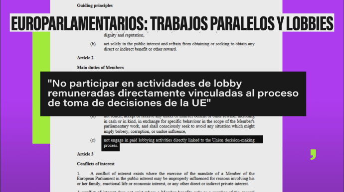 Según el código de conducta El Parlamento Europeo prohíbe que los eurodiputados hagan lobby remunerado relacionado con las decisiones de la UE, pero un estudio muestra que muchos trabajan para empresas cuyos intereses pueden influir en políticas clave.