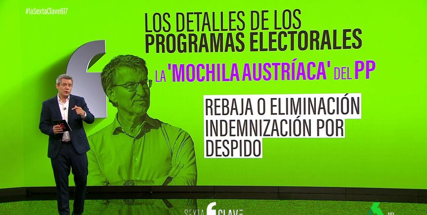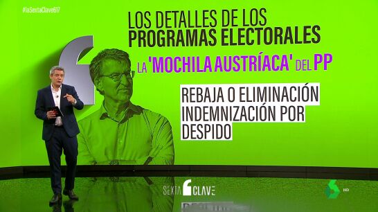 Del programa del PP, laSexta Clave destaca la famosa "mochila austríaca". A España la trajo el Ciudadanos de Albert Rivera y aunque los 'populares' no usan el nombre, el sistema es clavado: cuentas individuales para los trabajadores que puedan usar ante diversas contingencias de su vida laboral. Estas se nutrirán a través de aportaciones mensuales de las empresas.