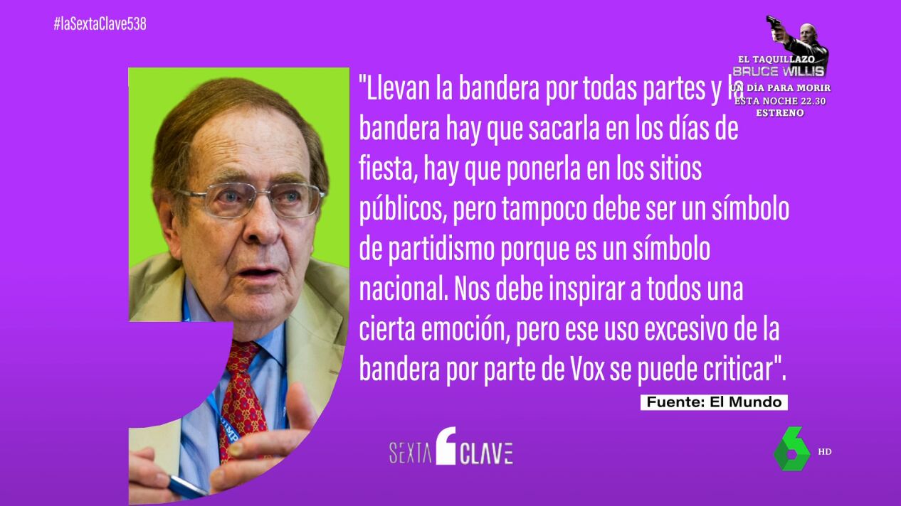 Este mismo lunes, Ramón Tamames ha cuestionado el "uso excesivo" que hace la formación de la bandera de España, algo que "se puede criticar". "Llevan la bandera por todas partes y la bandera hay que sacarla en los días de fiesta, hay que ponerla en los sitios públicos, pero tampoco debe ser un símbolo de partidismo porque es un símbolo nacional", ha opinado en una entrevista en 'El Mundo'.