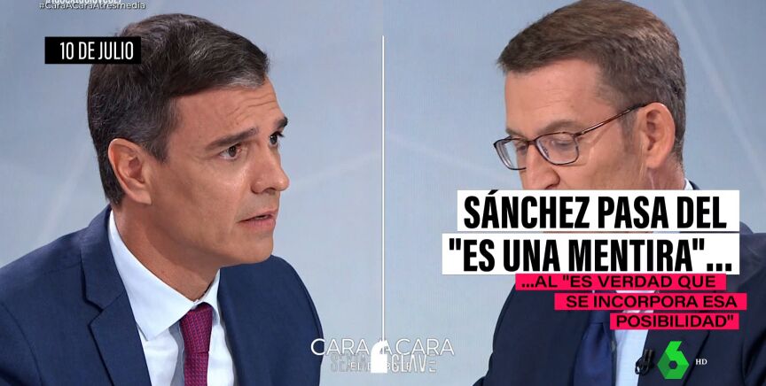 El 10 de junio, Sánchez decía que no, que el hecho de que hubiera que pagar en un futuro por circular por carreteras era mentira, que era un "bulo". Así lo dijo mirando a la cara a Feijóo durante el 'Cara a Cara' de Atresmedia.