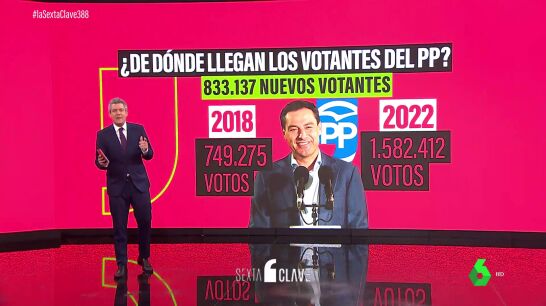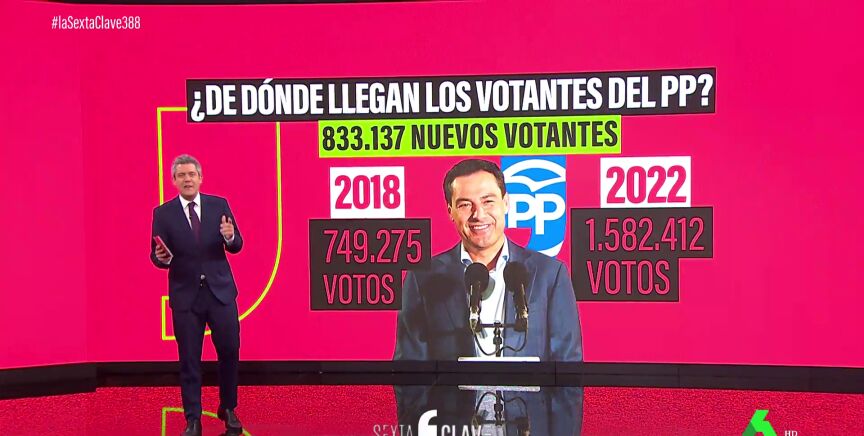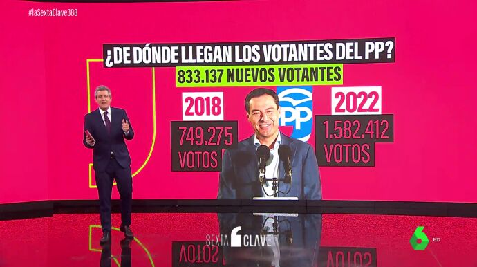 Juanma Moreno ha sumado unos 830.000 votos con respecto a las elecciones de 2018. ¿De dónde han salido? Lo analizamos en este vídeo de laSexta Clave.