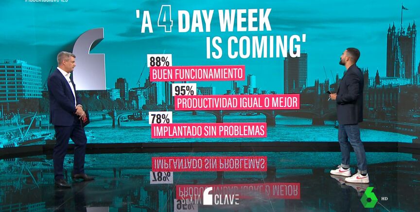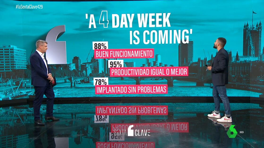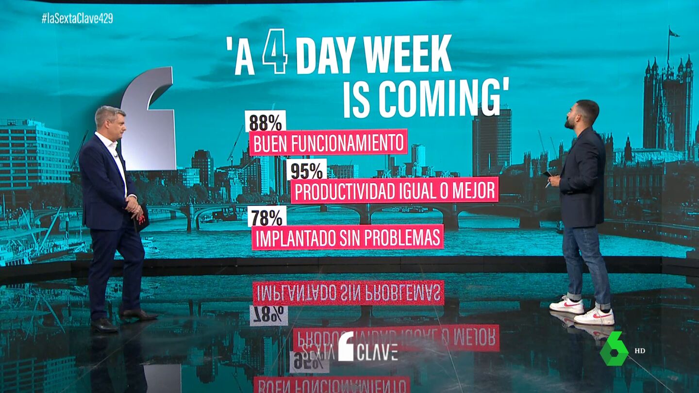 Ya hay resultados del mayor experimento jamás realizado sobre la jornada laboral de cuattro días. Se ha hecho en Reino Unido con 70 empresas y 3.300 empleados. Los datos son sorprendentes: casi todas las empresas que participan en el proyecto van a mantener la semana de cuatro días. Hugo Domínguez, periodista de economía de laSexta, nos explica en qué consiste el proyecto y cuáles son en concreto esos resultados.