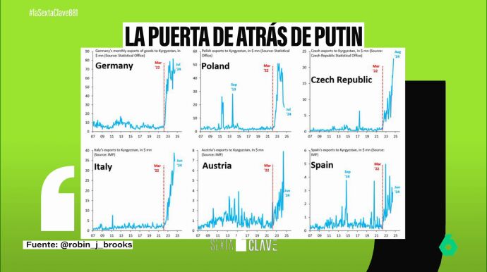Los datos provienen del análisis de Alberto Sicilia, quien plantea la pregunta de si este aumento en el comercio es parte de una estrategia de Rusia para evadir las sanciones impuestas por Occidente. Esta sospecha también ha sido expresada por el centro de investigación Brookings, que ha estado investigando las razones detrás de este milagro económico kirguizo.