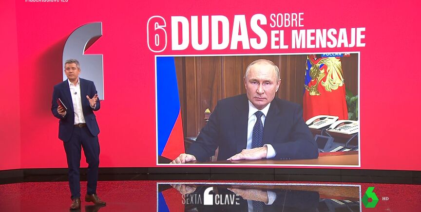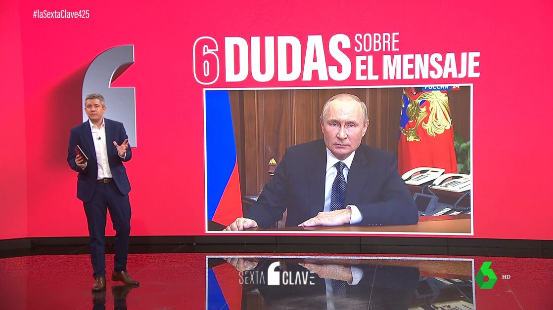 Vladímir Putin ha vuelto a convertirse este miércoles en protagonista en todo el mundo tras decretar la movilización militar parcial de la población rusa. Eso implica que los ciudadanos con experiencia militar pueden ser enviados al frente. No obstante, en su discurso, televisado a la nación, el presidente ha dejado también cuestiones sin resolver. Por ello, en laSexta Clave repasamos las 'seis dudas que deja el mensaje de Putin'. Primera: ¿puede Rusia permitirse mandar a 300.000 reservistas a Ucrania?