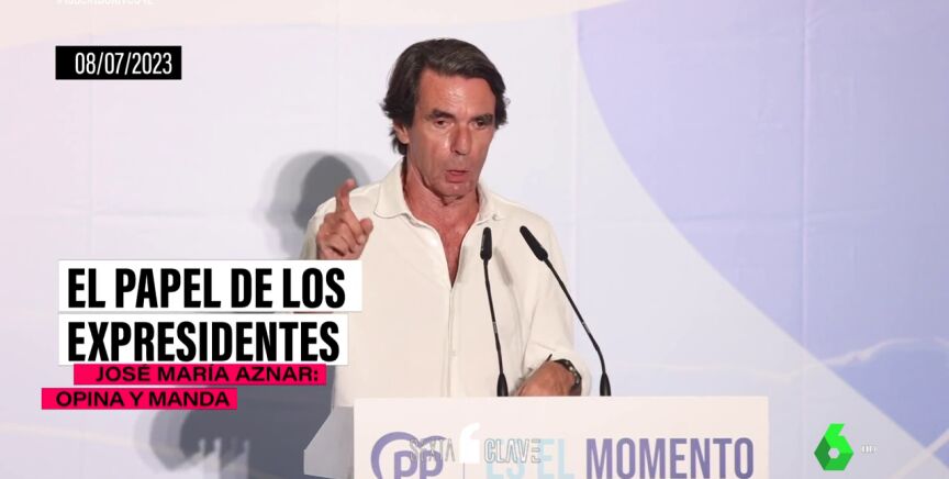 Empezamos por Aznar, que no se queda al margen de nada. El ex líder del Partido Popular dejó de ser presidente del PP en octubre de 2004. Pero no ha dejado de opinar. Dentro de su partido y fuera. El expresidente del Gobierno popular está dentro de la vida orgánica de su partido. Concede entrevistas, acude a todo tipo de actos y causa sensación en los congresos del Partido Popular. Le ha dicho a todos sus sucesores lo que debían hacer y ha entrado en todas las campañas electorales. En la última, se ha pronunciado sobre la ley que quiere "derogar": "Todas esas leyes que hablan de españoles buenos o malos, que dividen a los españoles en buenos o malos, tienen que ser derogadas y van a ser derogadas. Como lo va a ser la ley de Memoria Democrática".