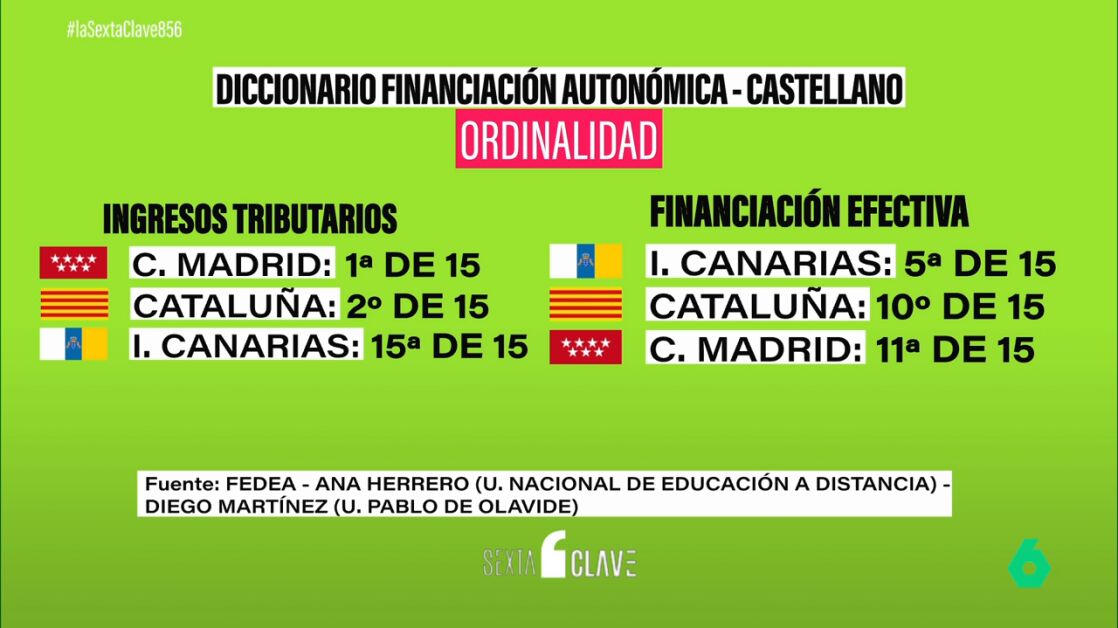 Uno de los términos que dominará el debate es el "principio de ordinalidad", que asegura que el orden de las comunidades autónomas en función de su capacidad de recaudación se mantendrá igual en el reparto de fondos. En otras palabras, ninguna región con baja capacidad de recaudación adelantará a las que tienen mayor capacidad en el reparto de financiación.