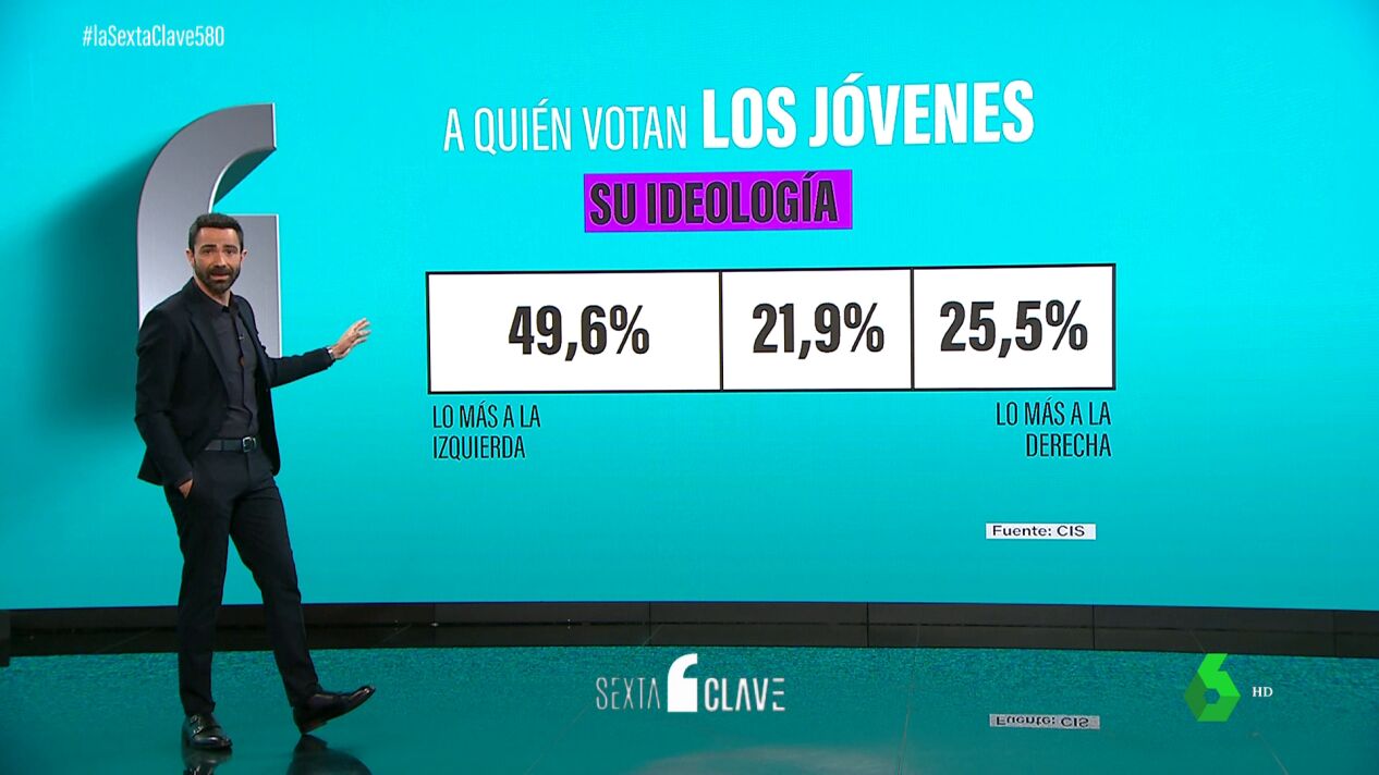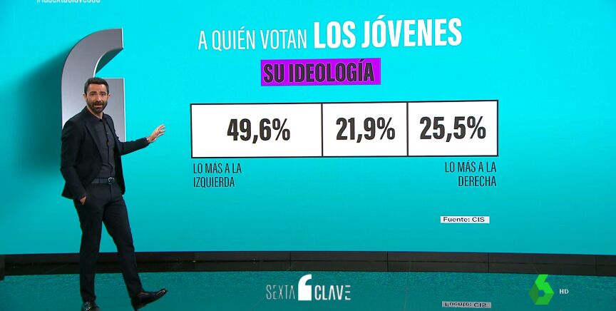 Si fuera por estos jóvenes, el CIS dice que son mayoritariamente de izquierdas. Casi la mitad, el 49,6%, se coloca en los valores de la izquierda. Un 21,9% se sitúa en posiciones más centristas. Y un cuarto, el 25,5%, se identifica más con la derecha. Todo según el CIS.