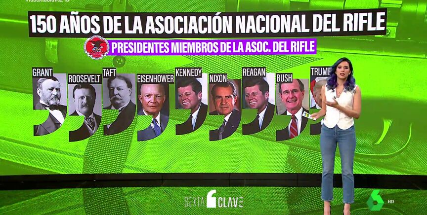 La periodista Ariadna García Chas repasa en laSexta Clave la trayectoria de la 'National Rifle Association', que este año cumple un siglo y medio de vida.