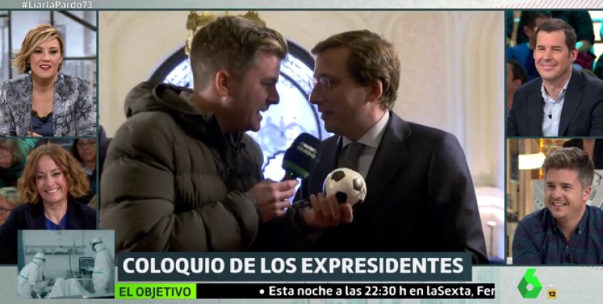 Luis Troya, de Liarla Pardo, ha preguntado a Almeida por este momento. El periodista bromea con el alcalde, diciéndole que, tras consultar el VAR, queda claro que es gol del niño en ese penalti. "¿Seguro?", pregunta Almeida.