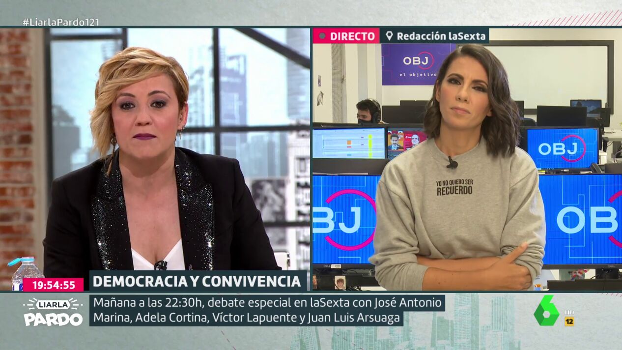 La presentadora advierte de que la situación que se vivió en el debate es "muy preocupante por si se traslada también a la calle" y defiende que "frente al odio la palabra es el mejor recurso".